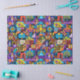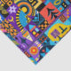 Color Palette: Extremely vibrant and diverse: Deep Purple, Bright Yellow, Electric Blue, Orange, Red, and Black.