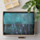 Folhas de Abstrato ou pequenos ramos com luzes de cordas roxas e azuis ao longo do topo. Tudo num fundo verde com um pequeno escrevendo cursivo. Perfeito para desacoplamento, artesanatos ou embrulhamento de presente. Certifique-se de checar a bolsa de presente!