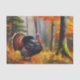 Papel tecidular vibrante impresso com um grande peru a andar numa floresta de outono. Perfeito para o outono e Ação de Graças projetos de artesanato de dissociação e embrulhamento de presente.