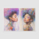 A striking coordinated pair of contemporary fine-art portraits featuring African American women with rich brown skin and expressive natural Afro hair. Each figure is shown in a quiet, introspective pose, eyes closed, surrounded by cascading drips of color and layered painterly textures. Vibrant hues flow through the hair and background, creating a sense of movement, emotion, and creative energy. The two portraits work beautifully together as a set, offering balance and variation, while also standing confidently on their own. With its expressive style and modern aesthetic, this pair fits comfortably within contemporary art, feminine expression, and abstract portraiture. Artwork similar to a modern mixed-media watercolor painting with expressive abstract influences……COLOR COMBINATIONS: Violet, lavender, turquoise, teal, coral, pink, gold, cream, charcoal……PERFECT FOR: Decoupage artists, mixed media crafters, furniture upcycling projects, decorative panels, statement art pieces, modern home décor, African American art collections, expressive feminine artwork, journals and creative projects, coordinated art sets 🖤 NOTE 1. The 18 lb tissue is a great choice if you like a little extra strength—it's easier to handle, resists tearing and allows for gentle repositioning. It’s also more opaque, making it perfect for darker surfaces. The 10 lb tissue is wonderfully lightweight and flexible giving you that smooth, blended finish. It’s ideal for layering on furniture or smaller projects so treat it gently and it will reward you with stunning results!