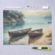 Dois barcos tranquilos descansam à beira da água, beijados pelas ondas macios. Esperam pacientemente, como se sonhassem com as viagens que podem fazer. Este lenço é perfeito para projetos de dissociação que evocam uma sensação de calma e beleza eterno.