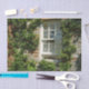 Uma fotografia de uma charmosa parede de casacos inglesa coberta por vinhas e uma janela com uma delicada cortina branca. Veja os produtos "English Cottage II" para uma cena de jardim de cheio. Esta imagem também é apresentada como o wallpaper widescreen "English Cottage I" (Algodão inglês I) na seção de Viagem do site www.mlewallpapers.com.