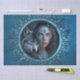 Aliança forte o lobo e a bela mulher. Cena mística em que uma mulher e um lobo ficam lado a lado contra um pano de fundo cósmico e impressionante. Ambas as figuras possuem olhos azuis luminosos e gritantes que olham profundamente para a alma, revelando uma conexão com a infinita extensão do universo. A mulher está cercada por uma aura celestial. Um símbolo em forma de estrela é gravado na testa, simbolizando seu poder espiritual e sua conexão com as estrelas. O lobo fica ao seu lado, o seu alerta de postura e orgulhoso. Seu olhar é igualmente intenso e misterioso com o da mulher, indicando uma profunda conexão entre as duas.