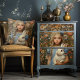 Whimssic Blue Victorian Chinoiserie Alice Storybook Tissue Paper | Artesanato de Mobília Décor. Este lenço branco mostra Alice em seu clássico vestido azul de cheque, segurando gentilmente seu amado coelho branco. A dupla se coloca contra um pano de fundo vitoriano da chinoiserie ornamentado, trazendo um charme calmo e enredo para qualquer projeto. Ideal para quartos temáticos de narração de histórias, cantos de leitura, ou como parte de um esquema de upciclismo de móveis, inspirado pelo conhecido conto, esse papel de tecido pode ser usado em desacoplamento, projetos de artesanato ou decoração de berçários para construir um tema coeso Alice no País das Maravilhas.