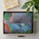 Oscar-Claude Monet (14 de novembro de 1840 - 5 de dezembro de 1926) era pintor francês, fundador da pintura impressionista francesa e o praticante mais consistente e prolífico da filosofia do movimento de expressar as suas percepções antes da natureza, especialmente quando aplicada à pintura da paisagem aérea. O termo "Impressionismo" deriva do título de sua pintura Impressão, levante soleil (Impressão, Assalto do Sol), que foi exibida em 1874 na primeira das exposições independentes montadas por Monet e seus associados como alternativo do Salão de Paris. A ambição de Monet de documentar o campo francês o levou a adotar um método de pintura da mesma cena muitas vezes para captar a mudança de luz e a passagem das estações. A partir de 1883, Monet morou em Giverny, onde comprou uma casa e uma propriedade e iniciou um vasto projeto paisagístico que incluía lagoas de lírios que se tornariam os sujeitos de suas obras mais conhecidas. Começou a pintar os lírios-d'água em 1899, primeiro em vistas verticais com uma ponte japonesa como característica central e, mais tarde, na série de pinturas em larga escala que o ocuparia continuamente nos próximos 20 anos de sua vida. Citação: Wikipedia