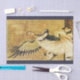 Design elegante, artístico e clássico em amarelo-dourado e azul reproduzido a partir de uma pintura medieval.com uma pedra brilhante 3D.Detalhe da cena Orsini-Altar. O pintor italiano Simone Martini foi uma figura importante No desenvolvimento da pintura italiana inicial e influenciou muito o desenvolvimento do Estilo Gótico Internacional. Fotografia e tratamento digital para melhor impressão por parte do búlgaro Lumini.