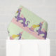 Tecido creativo ou decoração de festas de aniversário dotado de roxo e dragão cor-de-rosa que respiram fogo e que sopram velas de aniversário.