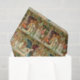 Colagem festiva, embelezada por Richly, de ilustrações de cartões de saudação de vintage com anjos dourados que dão presentes a crianças embelezadas com motivos decorativos decorativos decorativos decorativos, Cartões de natal e verde de inverno.