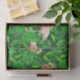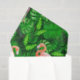Design de padrão aquoso com aves flamingas e folhas tropicais.