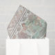 Um delicado padrão de aquarela em verde pastel e pêssego, contornado por renda em dois lados.