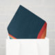 Ilustração geométrica de padrões de arcos duplos com estilo retrorativo com riscas de cor azul, azul, vermelha e bege em fundo azul escuro.