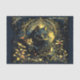 Papel De Seda Art Nouveau gato preto com flores ouros