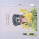 Esta é uma pintura da aguarela de um cão preto do pitbull com um sorriso enorme em sua cara que está atrás do hemerocallis de Stella d' Oro. Mensagem: "Você é minha felicidade!" O texto é editável. Aperfeiçoe para aniversários ou aniversários.