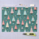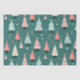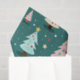 As cores divertidas decoram pequenas árvores de Natal bonitas desfilando sobre este papel de tecido de coração leve. Um fundo verde azul-escuro está por trás das coloridas árvores festivas que aparecem em azul-claro-rosa e com estrelas amarelas e baubles multicoloridos. Estes são de um padrão de aquarela retrorreflector.