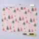 Imaginem esta cena mágica: vocês estão na floresta no Natal e esta visão está diante de vocês: uma floresta de pinheiros eververdes espalhados na neve caindo. No entanto, algumas árvores são cor-de-rosa! E algumas árvores já estão decoradas com ornamentos e reluzentes! Olhem para a neve: é rosa e branca. Adoramos a cena imaginativa de aquarela que está neste papel de tecido, e espero que vocês também gostem.