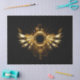 Asas mecânicas brilhantes, com engrenagens e faixa redonda de latão. Steampunk