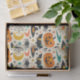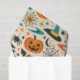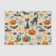A lively Atomic Age–inspired Halloween pattern bursting with motion and retro charm. Angular black cats with glowing green eyes, cheerful jack-o’-lanterns, playful bats, witches’ hats, spiders, spiderwebs, crescent moons, and starburst accents swirl across a warm cream background. The bold mid-century palette of pumpkin orange, teal, chartreuse, mustard, and deep black, combined with dynamic swooshes and geometric shapes, creates a sense of energy and fun. The overall mood is festive, graphic, and nostalgic rather than spooky.