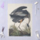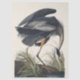 The "Great Blue Heron" lithograph by John James Audubon is one of his most famous works in his Birds of America series. Audubon, a renowned naturalist, traveled across America documenting hundreds of bird species with remarkable accuracy and detail. His scientific illustrations captured the wild birds of America in their natural habitats. The Great Blue Heron, featured in this stunning lithograph, is a striking bird with a slate gray body accented by blue hues. It has distinctive black markings on its shoulders, a white face, and a crown with black stripes. Known as the largest heron in the U.S., this bird is depicted with a long, yellow beak, poised to hunt fish in the marshlands. The heron's thighs are a chestnut brown, complementing its overall majestic appearance. Audubon's work not only showcases the beauty of the Great Blue Heron but also emphasizes the natural splendor of America's wetlands. The print is a reproduction of the original lithograph made between 1827 and 1838, a classic piece from Audubon’s early 19th-century collection.