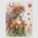 This tissue paper features an ethereal fairy-like woman with elfin ears adorned in vibrant leaves, branches, and earthy tones. With her flowing hair intertwined with autumn foliage and delicate leaves swirling around her, this enchanting autumncore watercolor artwork embodies the spirit of the season in the form of a forest dryad.