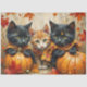 Papel De Seda Autumn Kittens Pumpkins e Foliage