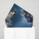 Lindas cinzas, azuis e aves marrons com coroas douradas sentam-se sobre flores azuis e folhas sobre fundo azul metálico. Excelente para trabalho de arte de desacoplamento, artesanatos de papel ou encapsulamento de presente.
