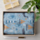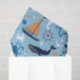 Oceano e baleias náuticas das características de design do tema, veleiros alaranjados, polvo, caranguejos, cavalos marinhos, rodas dos navios, âncoras, faróis, e mais em uma luz bonito - fundo azul.