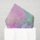Design floral artístico e elegante em redemoinhos orientais cintilantes, cores azul, rosa, fucsia, verde, roxo e centelhas douradas com uma pedra de ametista 3D vibrante. Pintura em aquarela com folha de ouro e prata e gráficos 3D por Bulgan Lumini (c) -Baldesign3d
