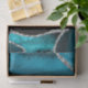Este papel de seda elegante e glamoroso é versátil e pode ser usado para dar presentes ou projetos de arte e artesanato. É ideal para qualquer ocasião, como aniversários, casamentos, chá de noiva, chá de bebê, aniversários de casamento ou presentes em geral. Apresenta ágata marmoreada azul turquesa em um fundo azul turquesa desgastado. Os acentos de brilho falso prateado e a impressão abstrata criam a combinação perfeita de chique e elegante.