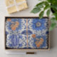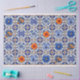 Papel De Seda Azulejo azul com flores laranja desligado