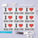 Quem não ama Bacon? Pegue seu equipamento I Heart Bacon aqui! Você pode personalizar e personalizar esses presentes, mudar as cores de fundo, azulejo ou desazulejo da imagem, e tornar-se criativo! Para aqueles que amam o BACON, isto envia a mensagem alto e claro!