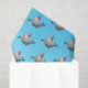 Papel tecidular com uma ilustração fofinha de uma baleia. A baleia está vestindo um chapéu de festa listrado vermelho e branco e começou a festa de aniversário na piscina.