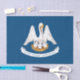 Essa design apresenta a bandeira estadual da Louisiana, um estado na região Deep South (Profundo Sul), nos Estados Unidos Centro-Sul. A Louisiana é delimitada pelo estado do Texas a oeste, Arkansas a norte, Mississippi a leste e o Golfo do México a sul. Alguns ambientes urbanos da Louisiana possuem um patrimônio multicultural e multilingue, fortemente influenciado por uma mistura de culturas francesas, italianas, haitianas, espanholas, nativas americanas e africanas do século XVIII. A bandeira da Louisiana mostra "pelican em sua piedade" (ou seja, uma mãe pelicana no ninho alimentando seu próprio sangue) em fundo azul; o texto do lema estadual, "Union, Justice, Confidence", também é exibido. A bandeira foi originalmente projetada em 1912. A capital da Louisiana é Baton Rouge, enquanto a maior cidade do estado é Nova Orleans. Outras grandes cidades da Louisiana incluem Shreveport, Lafayette, Lake Charles, Bossier City, Kenner, Monroe, Alexandria e Houma.