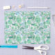 Papel de desenho animado, azul/verde, impressão, com um padrão de beleza fofa e artigos de banho, como roupões de banho, sabão, toalhas de banho, bolhas e salpicos de água.