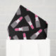 Este lenço de papel preto que caracteriza um teste padrão do batom cor-de-rosa com uma embalagem das bolinhas.