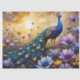 Papel De Seda Beautiful Blue Peacock in Floral Landscape