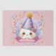 Comemore um aniversário perfeito com nossa adorável Cartoon Gatinha Kawaii Kitty Tissue Paper apresentando um gato vestindo um chapéu festa de aniversário rodeado de confete colorido. Perfeito por adicionar um pouco de diversão ao seu embrulho de presente!