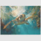 Esta pintura digital de óleo mostra uma tartaruga marinha majestosa graciosamente deslizando através de água cristalina, cercada por tons serenos de verde e azul. As texturas ricas e pinceladas fluidas criam uma cena submarina tranquila, perfeita para os entusiastas da vida oceânica e marinha.