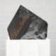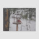 Papel de tecido do Natal moderno com um cardeal vermelho e uma casa de pássaros. O texto Feliz Natal em ouro pode ser personalizado ou o texto pode ser removível. Uma paisagem exterior na neve.