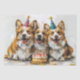 Cães bonitos Pembroke Welsh Corgi vestidos para uma festa de aniversário. Perfeito para cães, pais de cães e amantes de cães pelo seu aniversário.