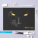 Bonito gato preto com olhos amarelos dá uma impressão mágica de ouro em veludo preto. Um lenço engraçado para qualquer um. Personalizável. Você pode alterar ou excluir o texto modelo de acordo com suas necessidades e desejos. Divirta-se e seja feliz!