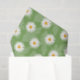 Este lenço apresenta o padrão ilustrado de flores margaridas brancas e amarelas de Destei. A cor de fundo é verde com um padrão claro de folhas.