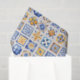 This blue, white, and yellow tiles pattern is perfect for tissue gift wrap. Adds a summer aesthetic to your gift. AI assisted graphic purchased with commercial license. Artwork: PaintPixelCo