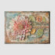 An intricate boho inspired flower design with dimensional petals in warm terracotta, blush pink, and ivory tones, set against a textured shabby chic background of teal, bronze, and distressed beige. The layered detailing and embossed foliage give it an artisan, hand crafted look, making it ideal for romantic and vintage inspired projects. Artwork similar to a mixed media painting with raised relief textures…..COLOR COMBINATIONS: