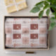 A delicate and pretty pink boho pattern with intricately wrapped gifts, celestial garlands, and festive holiday trees and candles.
