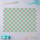 Enrole seus estoques e coloque seus sacos e caixas de presente com papel de tecido de bolinhas. Bolinhas de Maroon com contornos brancos adicionam brincadeira a um fundo verde de menta. O padrão geométrico é texturizado para parecer tecido. Imagem criada digitalmente. Copyright © Claire E. Skinner. Todos os direitos reservados.