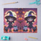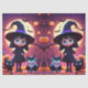 Este lenço apresenta uma bruxa bonita em uma fantasia negra com gatos e abóboras na noite de Halloween. Excelente para os seus artesanatos ou como embrulho de presente!