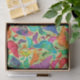 Este teste padrão de borboletas do verão, em uma paleta de cor-de-rosa, de azul, de alaranjado, de roxo, de amarelo, e no marrom em uma luz - o fundo verde, faz um lenço de papel bonito para um presente especial.