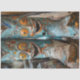Maravilhas: Estas botas azuis pintadas à mão apresentam expressões faciais lúdicas e padrões intrincados, misturando humor com arte. Parecem ser feitos de pedra ou argila.