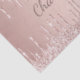 Um fundo falso metálico dourado rosa com pingos de brilho falso, aspecto de tinta pingando. Personalize e adicione um nome. O nome é escrito com uma fonte moderna de letra manual. Para presentes de aniversário, chá de noiva e chá de bebê.