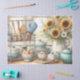 Papel De Seda Bule de chá e flores solares da cozinha retrô